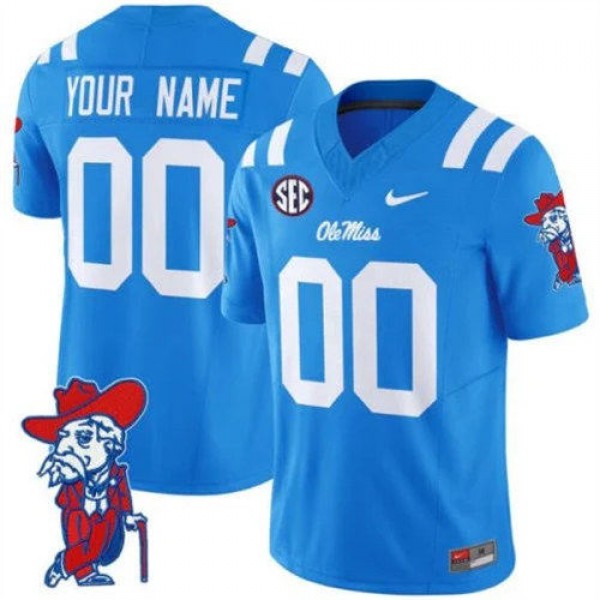#00 Custom White Ole Miss Top-Tier Men NCAA Football Jersey - Elite-Level Performance 19952238: Create Your Legacy in Rebel Blue - Ultimate Personalization for True Rebels