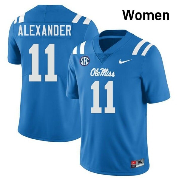 • In the heart of Oxford, where football isn't just a game but a tradition, a new legend is emerging. Introducing the #11 Deuce Alexander Powder Blue Rebels Top-Tier Women Player Football Jersey - Elite-Level Performance 27645570 - where elite performance meets timeless Rebels pride. This isn't just another jersey, it's your front-row ticket to the future of Ole Miss football, crafted for the dedicated fan who lives and breathes Rebels spirit.