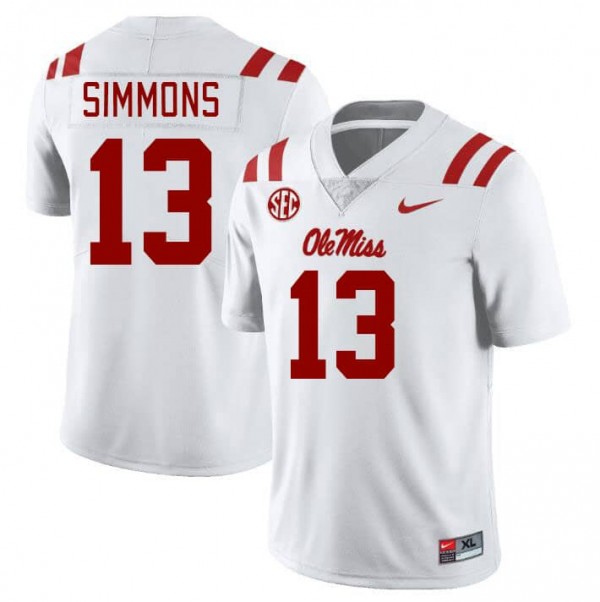 Austin Simmons Pro-Level White #13 Ole Miss Men NCAA Football Jersey - Top-Tier Gear 41424714: Wear the Legacy, Embrace the Spirit
