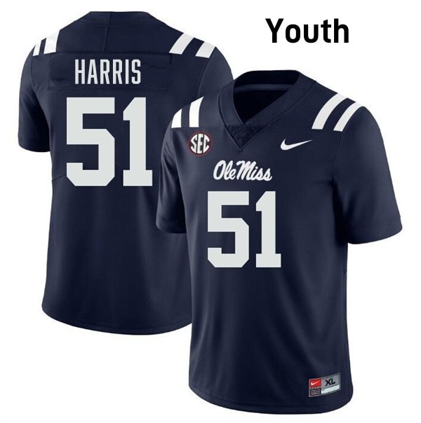 Navy #51 Ole Miss Rebels Zxavian Harris Youth Game-Ready College Football Jersey - Premium Quality 80457792