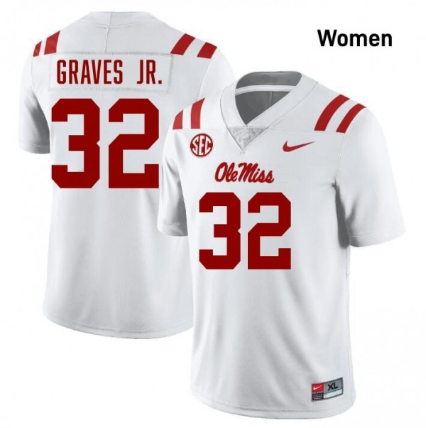 • Ole Miss Rebels Elite Chris Graves Jr. White #32 Women College Football Jersey - High-End Performance 86316973 - wear the number of your favorite rising star as he makes his mark in Rebels history.