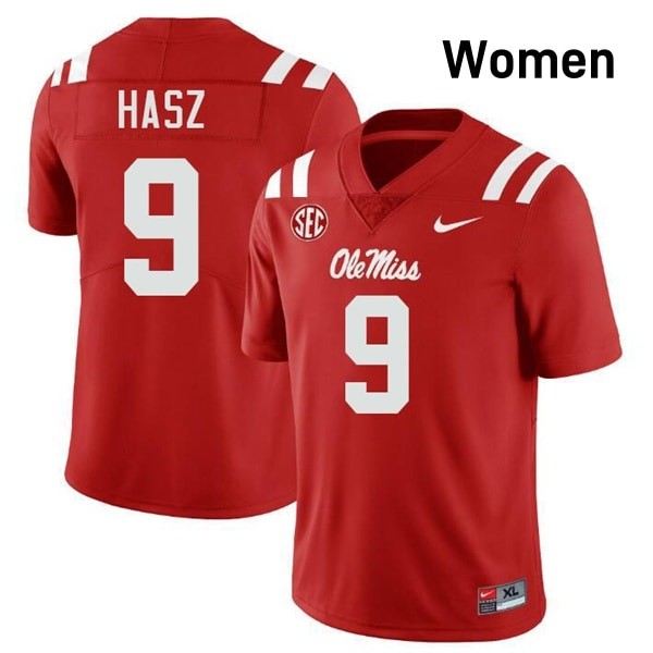 Ole Miss Rebels Elite Luke Hasz Red #9 Women College Football Jersey - High-End Performance 12128154