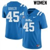 Premium Powder Blue #45 Mike Baker Ole Miss Rebels Women College Football Jersey - Pro-Grade Gamewear 85451004