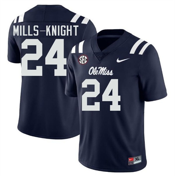 Shekai Mills-Knight #24 Navy Championship-Caliber Ole Miss Men NCAA Embroidery Football Jersey - Pro-Grade 68685440: Wear the Legacy, Embrace the Spirit