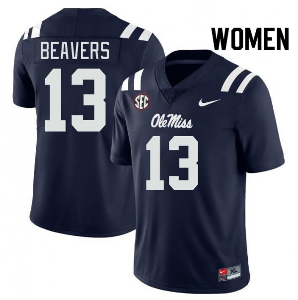 • University of Mississippi Elite Cedrick Beavers Navy #13 Women High School Football Jersey - High-End Performance 20655253 - wear the number of your favorite rising star as he makes his mark in Rebels history.