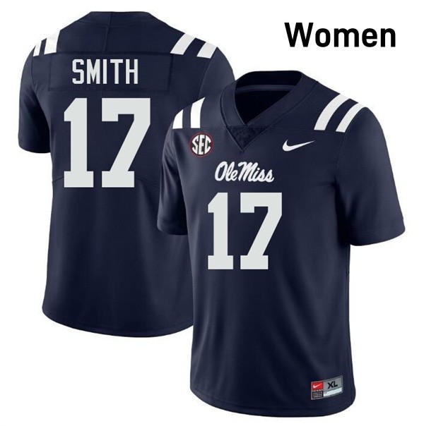 • University of Mississippi Elite Maealiuaki Smith Navy #17 Women High School Football Jersey - High-End Performance 83636803 - wear the number of your favorite rising star as he makes his mark in Rebels history.